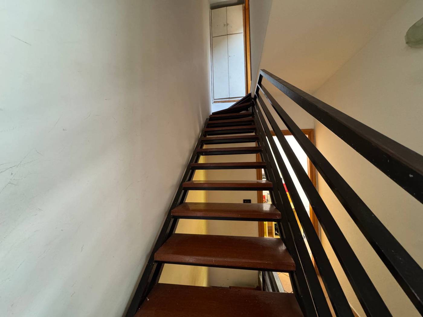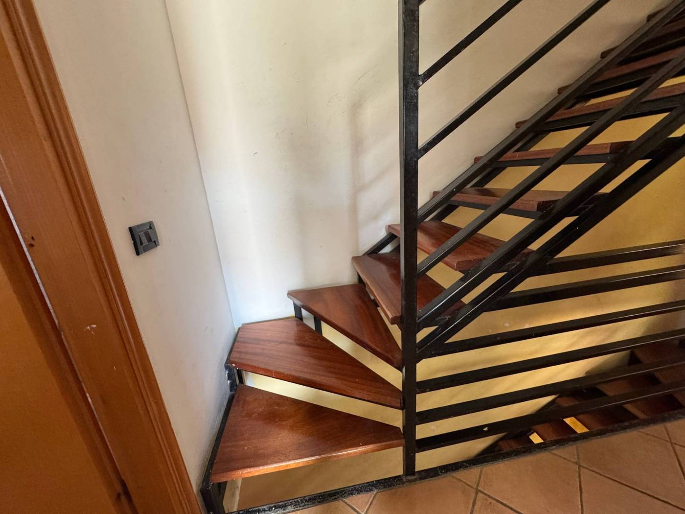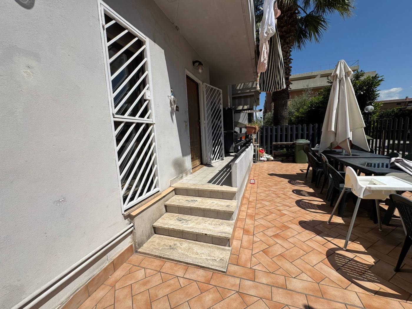 leggermente rialzato troviamo un soggiorno a vista con angolo cottura, camera da letto attualmente adibita a studio lavanderia e un bagno. All'esterno c'è un ampio e gradevole giardino angolare mattonato di oltre 120 metri quadri.